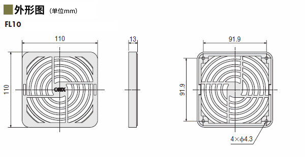 说明 防护网(1片)、滤网(1片)及安装螺丝的套件品。