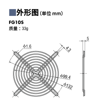 说明 | 不锈钢制防护网(1片)和安装用螺丝的套件品。 (适用轴流风扇的尺寸: □104 mm-厚度度25 mm) |