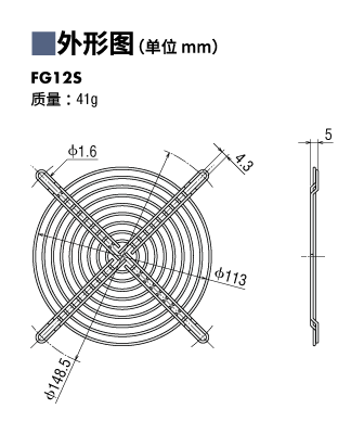 说明 | 不锈钢制防护网(1片)和安装用螺丝的套件品。 (适用轴流风扇的尺寸: □120 mm-厚度度25 mm) |