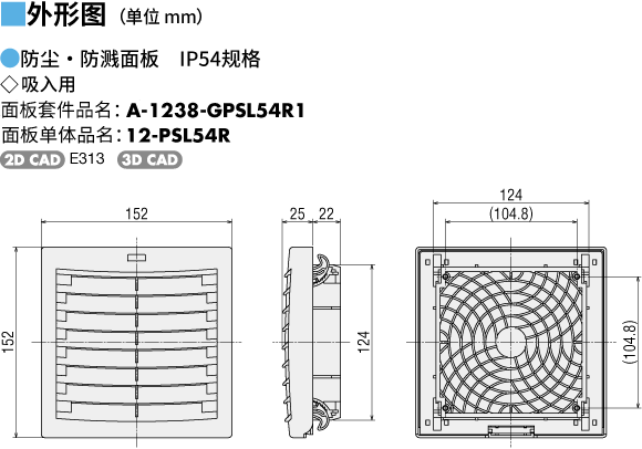 说明 | 吸入用面板(1片 颜色:浅灰),铁制防护网(1片)、风扇安装用螺丝(4个)的套件品。 |
