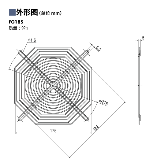 说明 | 不锈钢制防护网(1片)和安装用螺丝的套件品。 (适用轴流风扇的尺寸: □180 mm) |