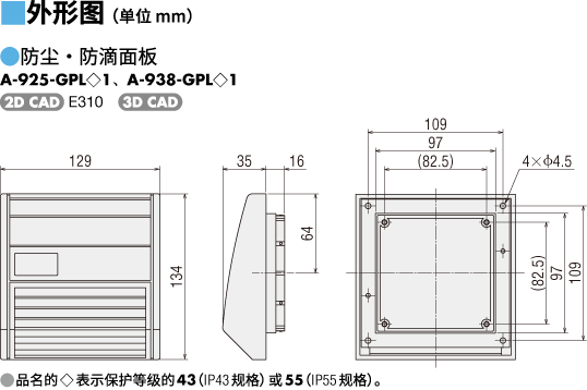 防尘·防水面板套件 A-938-GPL431 销售停止品 - -