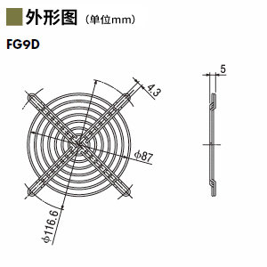 说明 面板(1片 颜色:浅灰)、铁制防护网(1片)、风扇组装用螺丝、零件组装用螺丝、面板安装用螺丝的套件品
