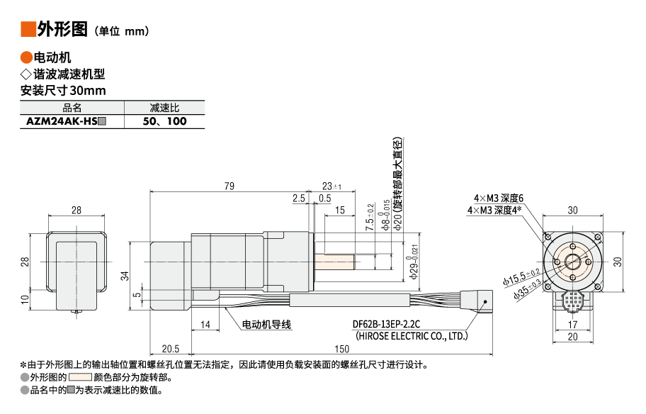 FC减速机型 | 35mm | AZM24 | 7.2、15、25 | 80 | 120 | 180 | 230 | - | 80 |