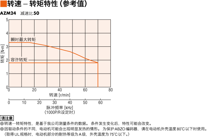 AZM14、AZM15、AZM24、AZM26:±450转(900转) AZM46、AZM48、AZM66、AZM69:±900转(1800转) |