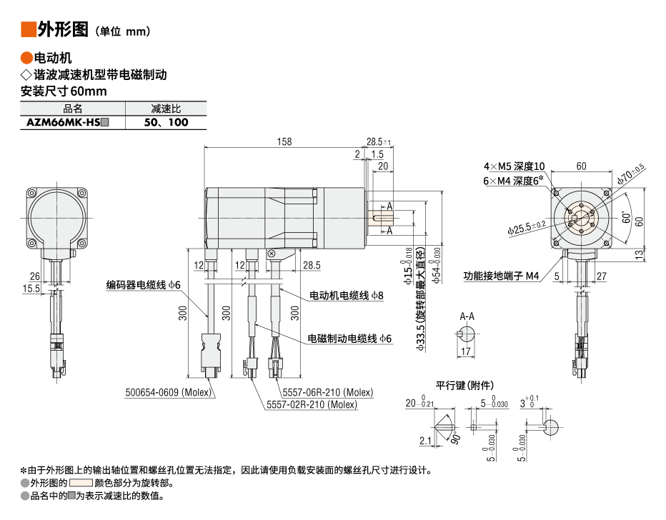 HPG减速机型 | 40mm | AZM46 | 5 | 150 | 170 | 190 | 230 | 270 | 430 |