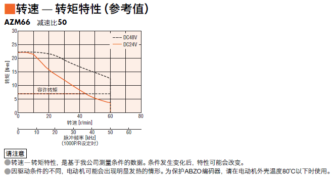 AZM14、AZM15、AZM24、AZM26:±450转(900转) AZM46、AZM48、AZM66、AZM69:±900转(1800转) |