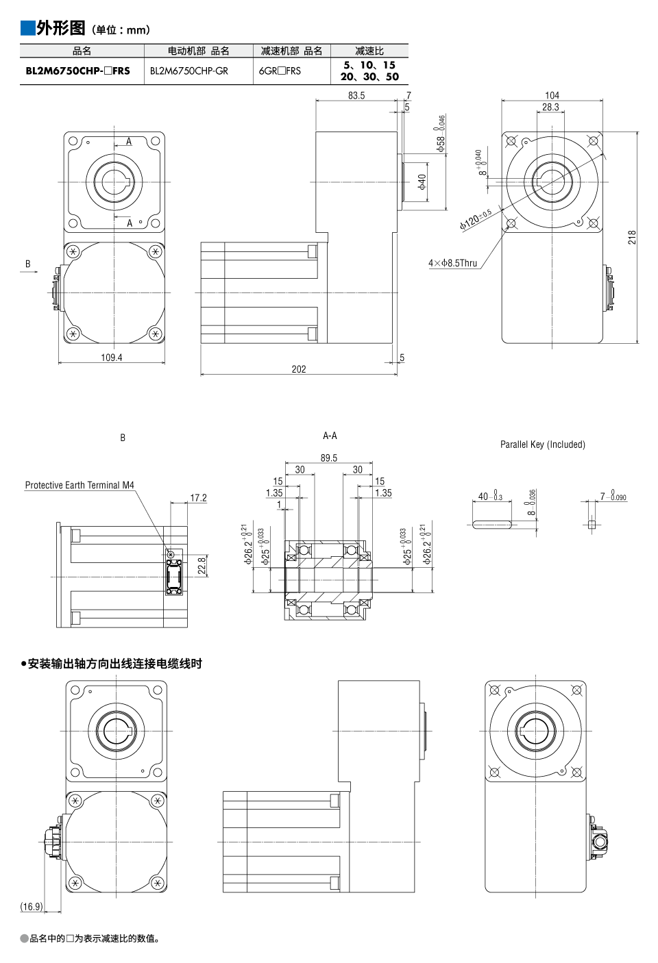 圆轴型应安装散热板,以确保电机外壳表面温度在90°C以下。 - ∗2