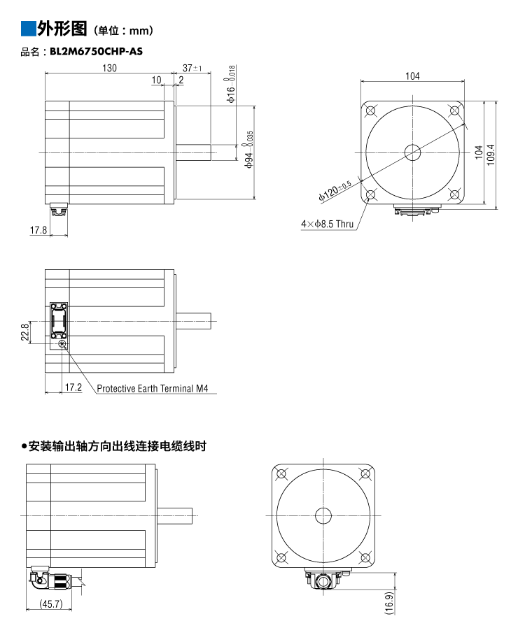 圆轴型应安装散热板,以确保电机外壳表面温度在90°C以下。