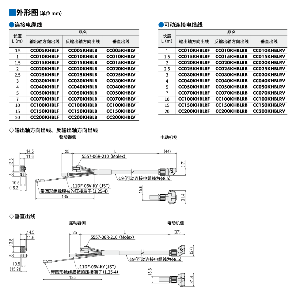 说明 | 可动连接电缆线 输出轴方向出线 长度2 m 请于电缆线需反复弯曲时使用。 |