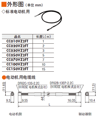 说明 | 电动机与电缆线间中继时必需的电缆线。长度2 m |