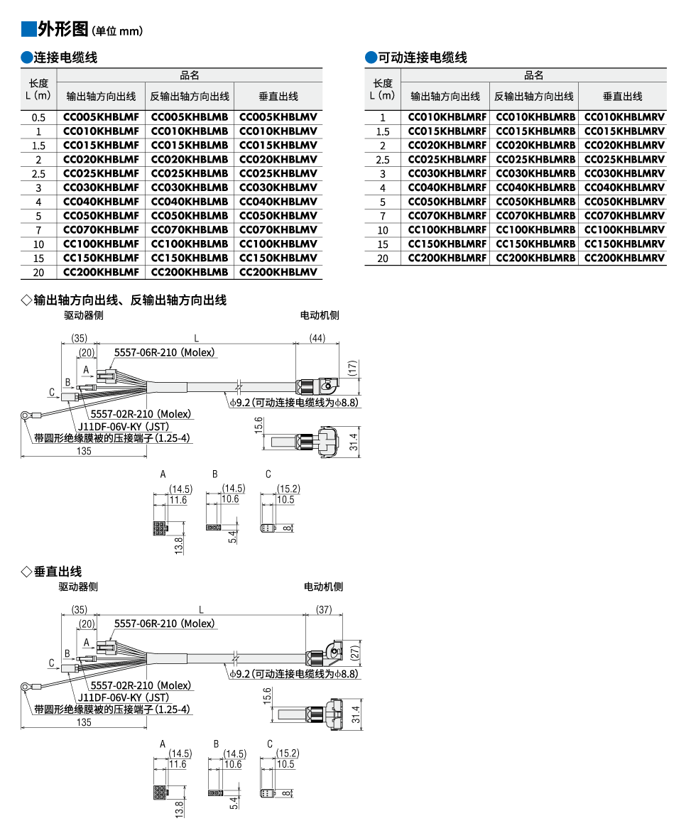 说明 | 可动连接电缆线 垂直出线 长度4 m 请于电缆线需反复弯曲时使用。 |