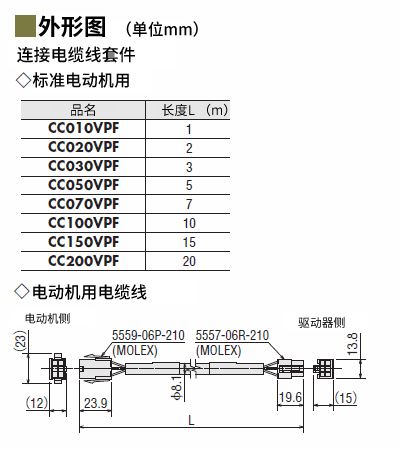 说明 | 电动机与驱动器间连接,或电动机与电缆线间中继时必需的电动机用电缆线。长度5 m |