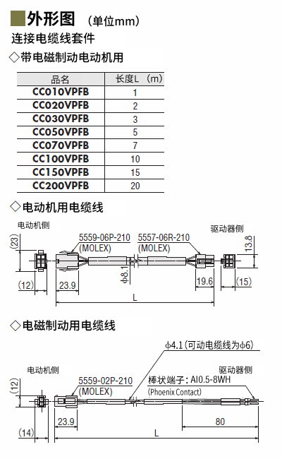 带电磁制动用电缆线套件 | CC050VPFB | 15个工作日 | 575.00 | 518.00 | |