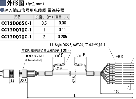 说明 | 便于连接驱动器与上位控制器的通用多芯电缆线。芯数:12芯 长度:0.5 m |