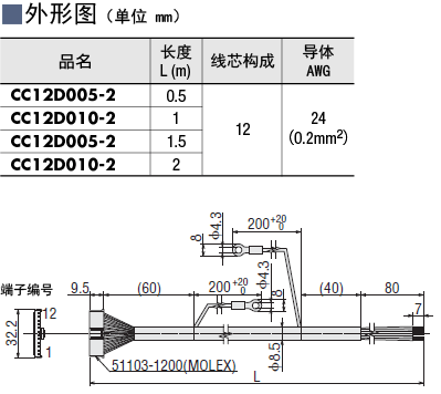 说明 驱动器的信号用带连接器电缆线。 长度1.5 m