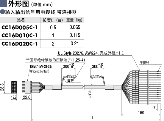 说明 | 便于连接驱动器与上位控制器的通用多芯电缆线。芯数:16芯 长度:0.5 m |