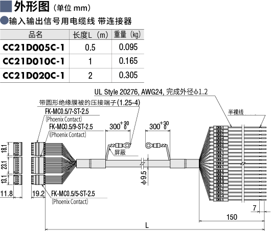 说明 | 便于连接驱动器与上位控制器的通用多芯电缆线。芯数:21芯 长度:0.5 m |