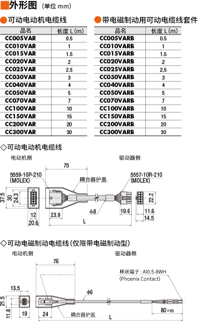 说明 | 电动机与驱动器间的可动电动机用电缆线。请于电动机安装在可动部,电缆线需弯曲时使用。长度30 m |
