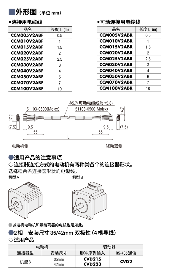 说明 | 连接器连接方式电动机与驱动器直接连接用的电缆线。两端带连接器,长1 m |