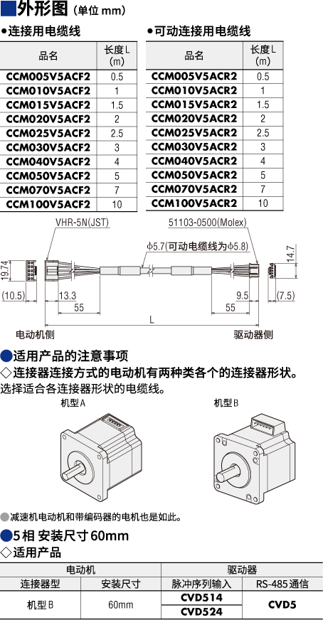说明 | 连接器连接方式电动机与驱动器直接连接用的电缆线。两端带连接器,长1 m |