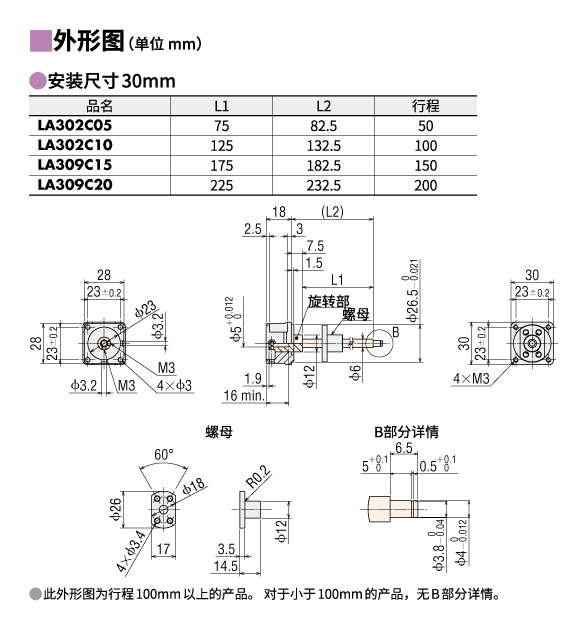 - 丝杠带适配器: 树脂螺母、电动机输出轴安装螺丝、电动机组装螺丝、润滑油、使用说明书