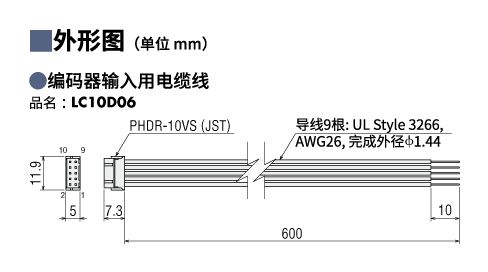 说明 | 编码器输入用电缆线,用于CVD系列 全闭环控制型驱动器。长度 0.6 m |