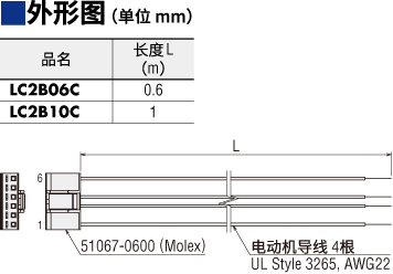 说明 请用于电动机与驱动器间的连接。已压接连接器导线型,长0.6 m