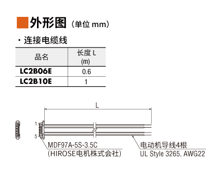 说明 请用于电动机与驱动器间的连接。已压接连接器导线型,长0.6 m