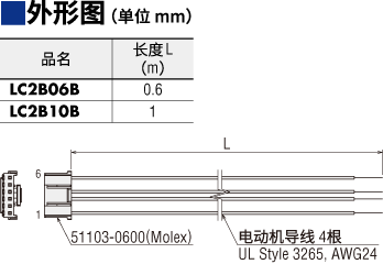 说明 请用于电动机与驱动器间的连接。已压接连接器导线型,长1 m