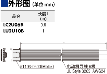 说明 请用于电动机与驱动器间的连接。已压接连接器导线型,长0.6 m