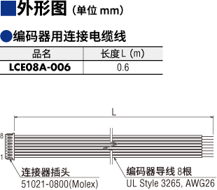 说明 编码器连接用(线性驱动输出)、连接器已压接、长度0.6 m