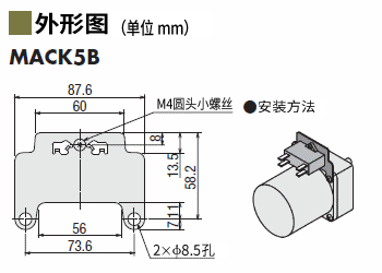 说明 | 是可以将电容器与电动机一起固定的板与附Faston端子导线的套件。 |