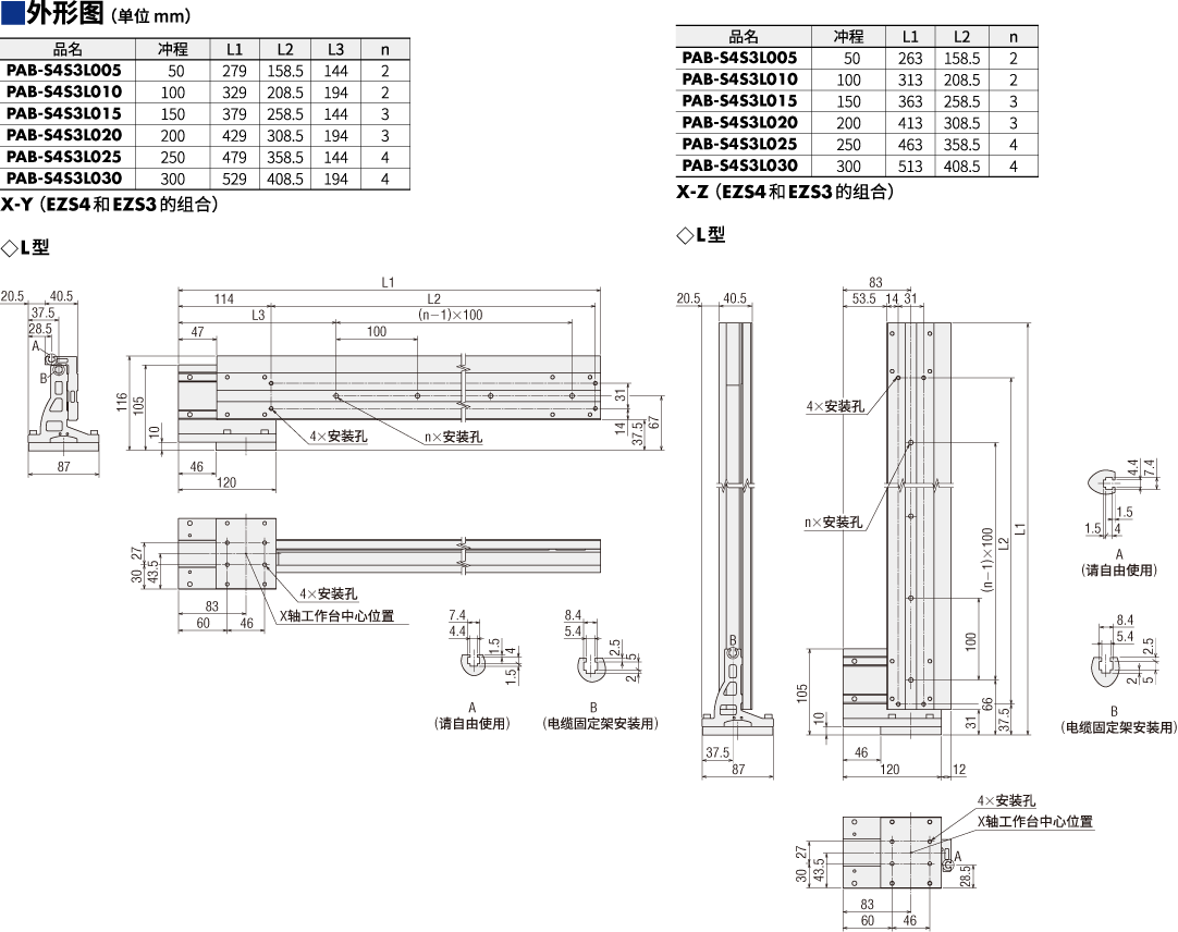 说明 | EZS4与EZS3的组合 L型 2轴侧行程150 mm |