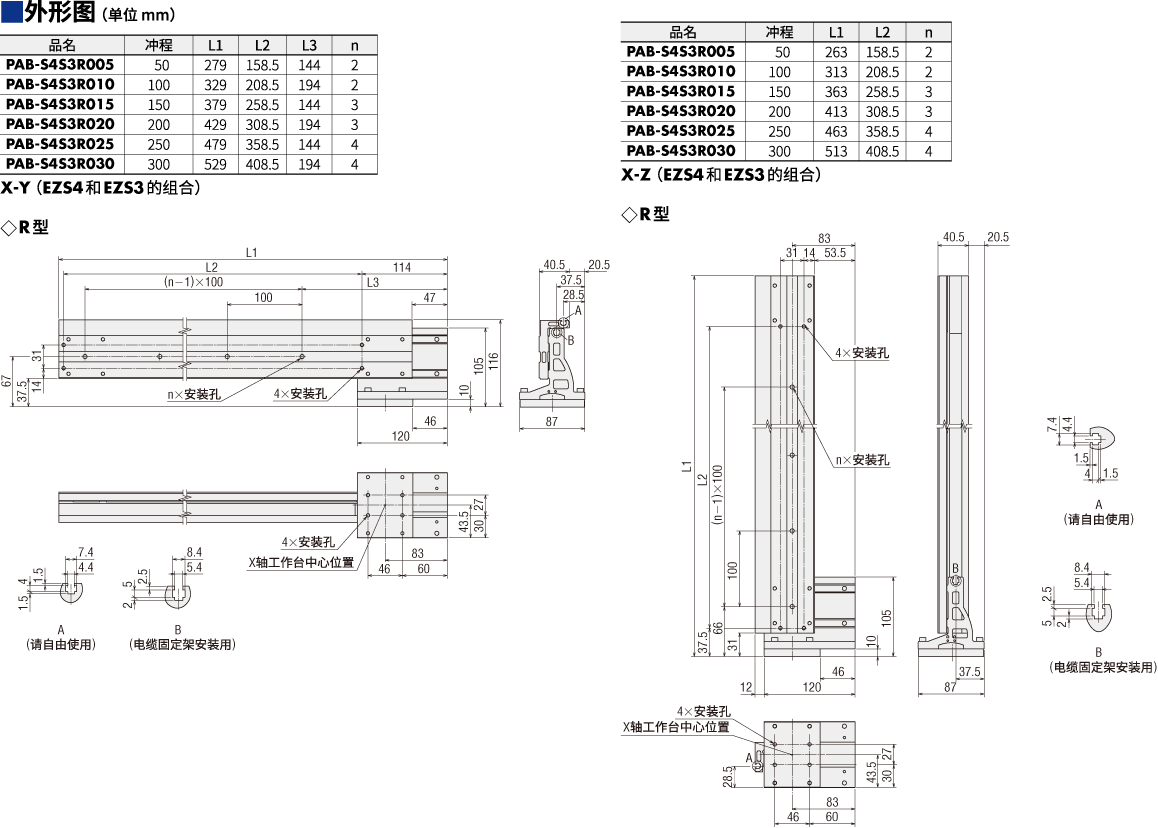 说明 | EZS4与EZS3的组合 R型 2轴侧行程150 mm |