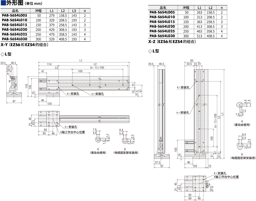 说明 | EZS6与EZS4的组合 L型 2轴侧行程100 mm |