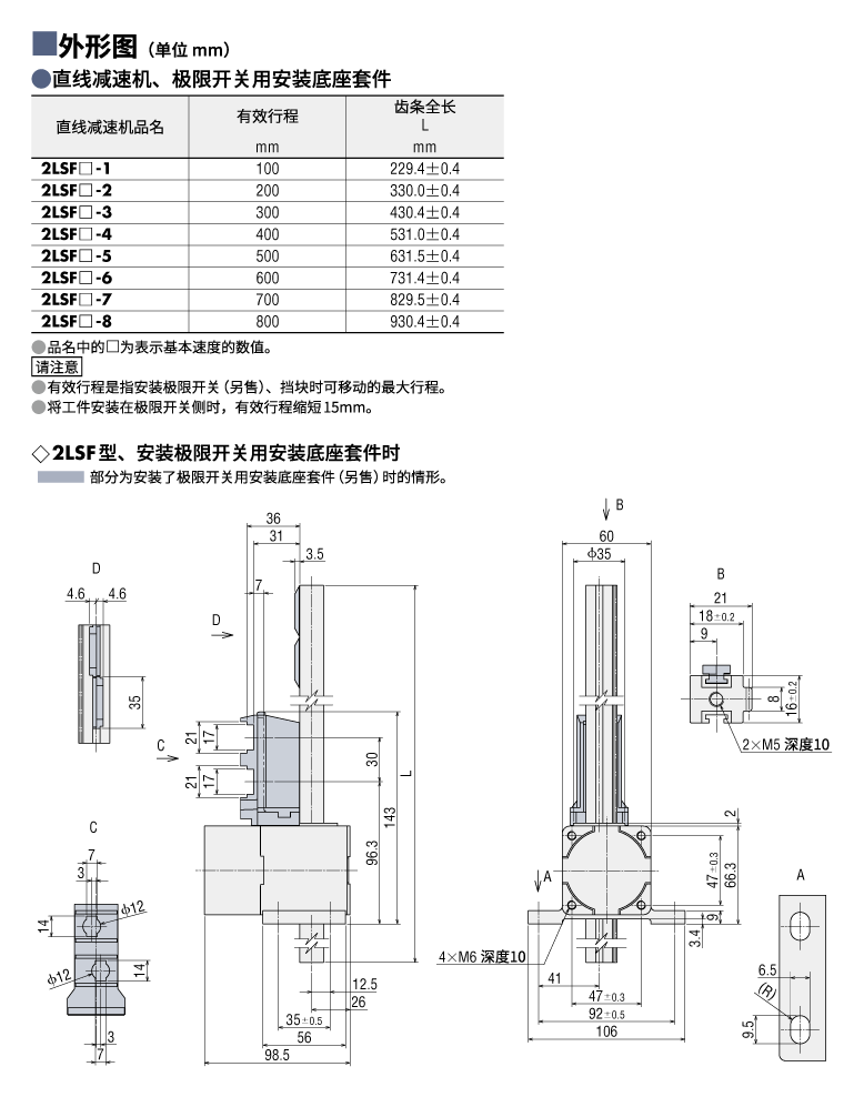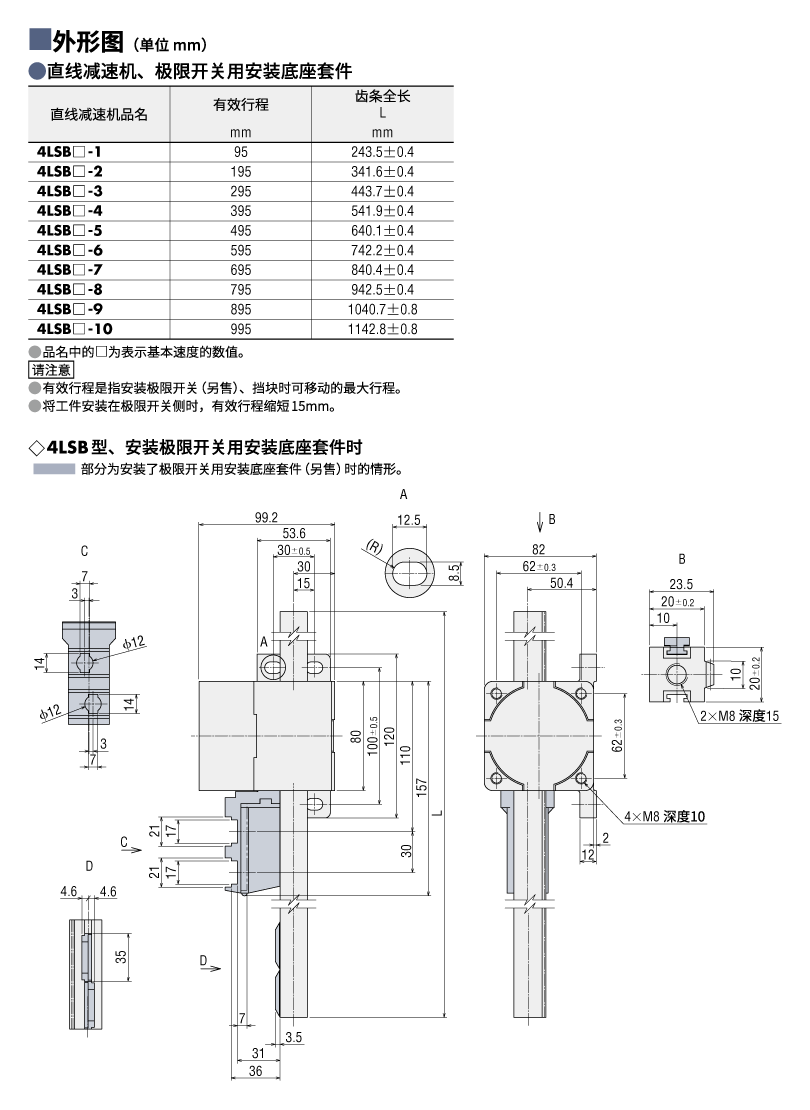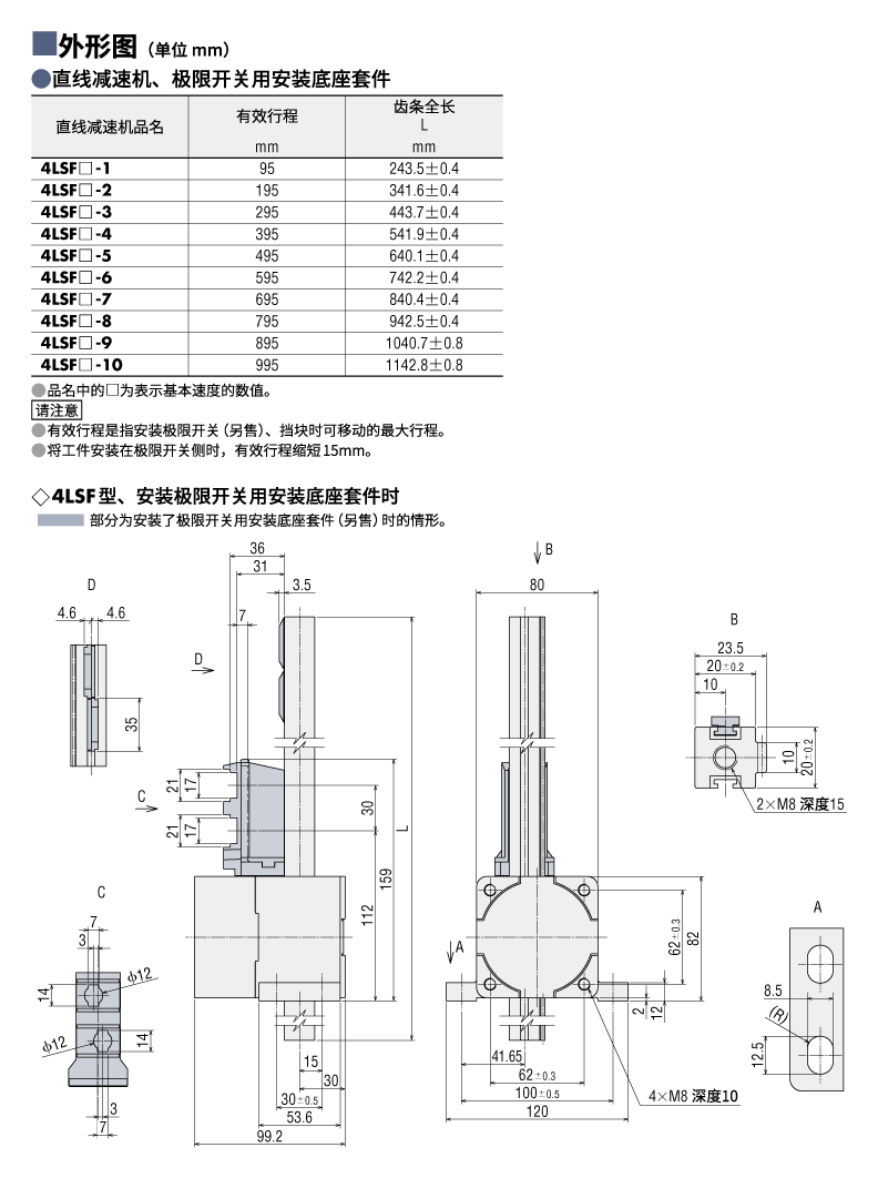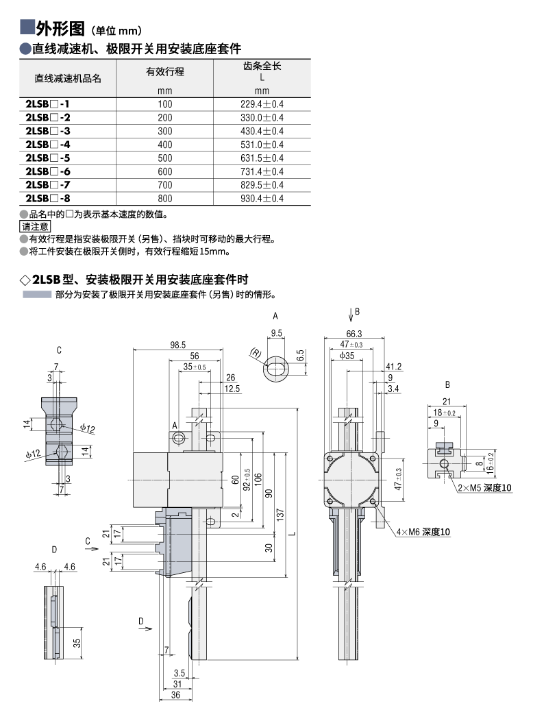 说明 极限开关用安装底座、挡块 (4个)、护盖
