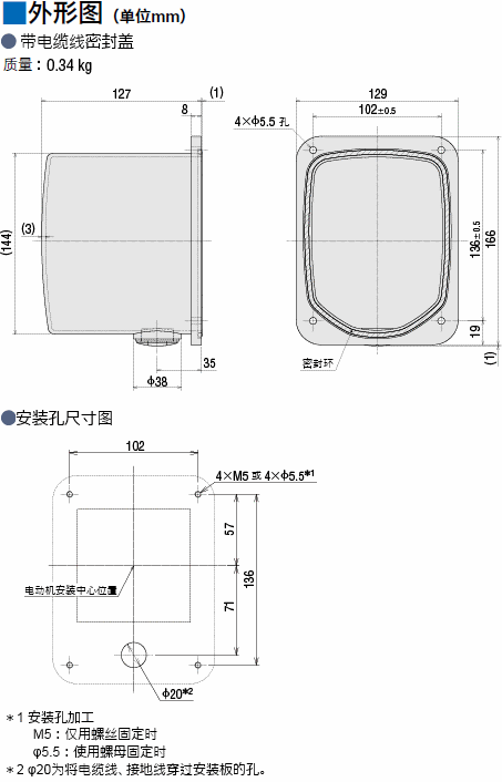 说明 | 保护电动机的外盖。对应保护等级IP66规格,在水和灰尘飞散的环境中也可以使用。 |