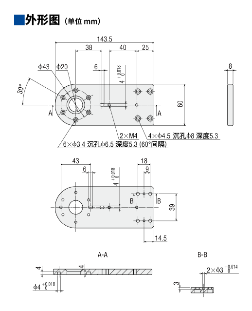 说明 可用于3轴SCARA机器人的安装底座。(EH4-AZAKH用)