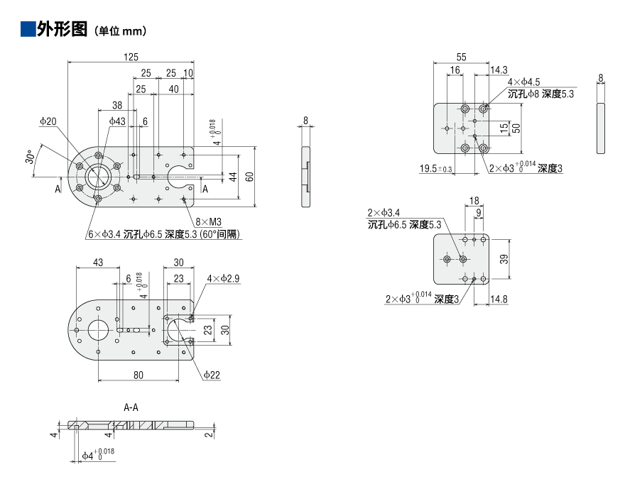 说明 可用于3轴SCARA机器人的安装底座。(DR28T+EH4-AZAKH用)