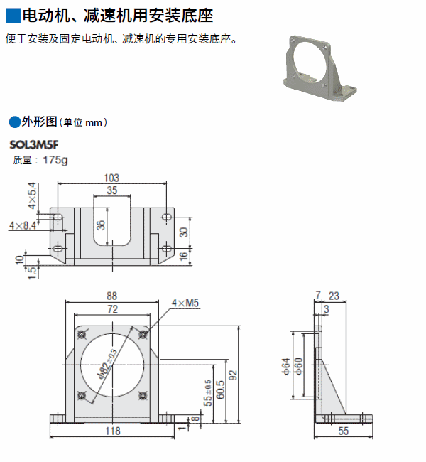 电动机安装底座 SOL3M5F 14个工作日 269.00 242.00